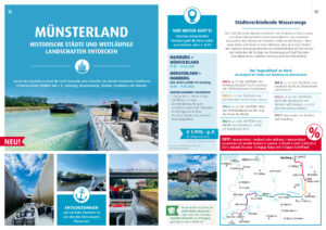Die Fahrt durch das Münsterland bietet an 6 Tagen Schifffahrt eine Vielzahl an interessanten und abwechslungsreichen Sehenswürdigkeiten. Von maritimen Bauwerken über historische Altstädte, Schlösser und Burgen – diese Reise bietet viel Potenzial zum Entdecken, aber auch zum Erholen. Hier kommen Erholungssuchende wie Städteliebhaber auf ihre Kosten und verbinden die Vorzüge von Wasserweg und Stadt bei einer einmaligen Reise zwischen Hamburg und dem Münsterland.